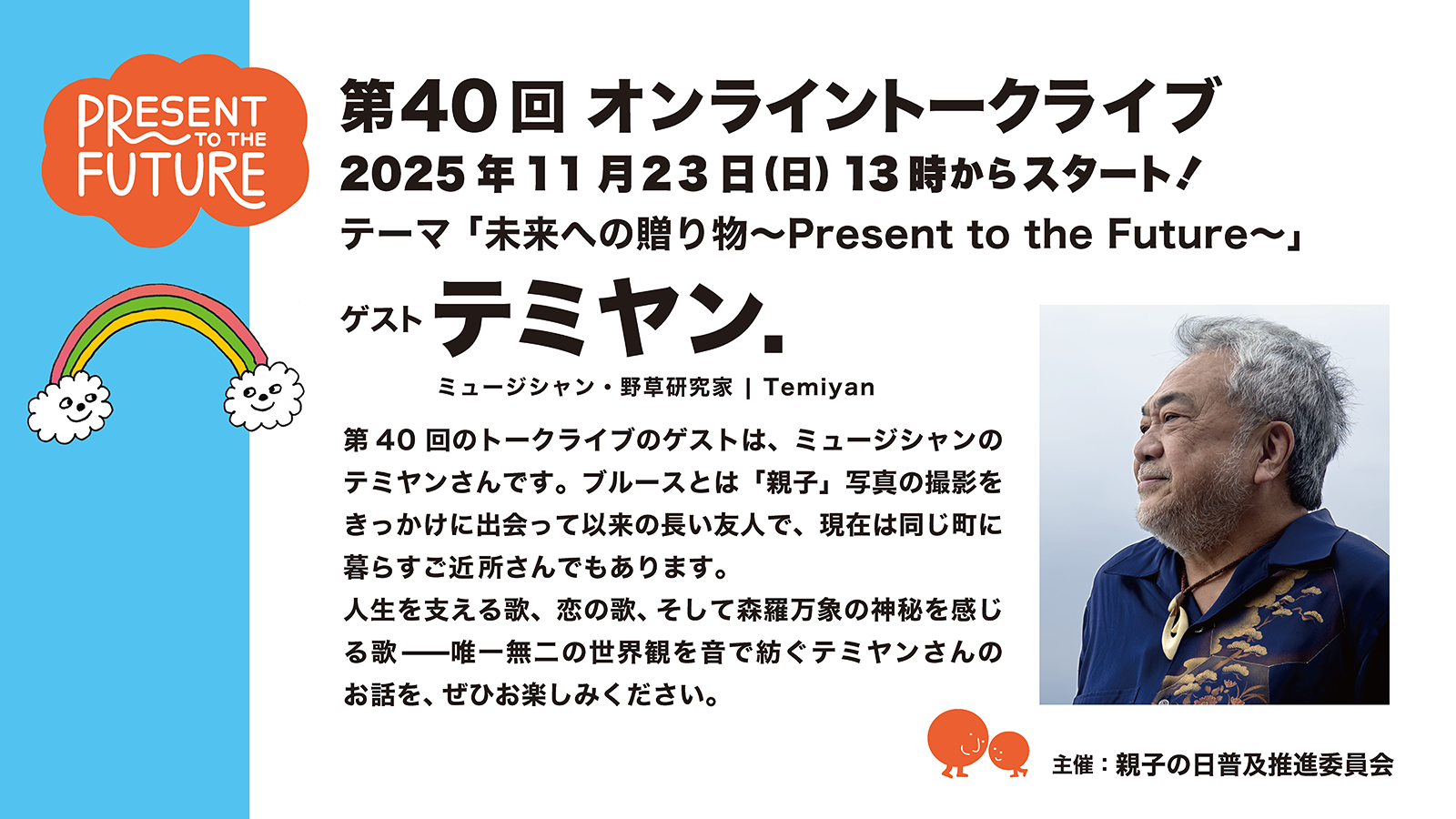 今年もたくさんの皆様から、思い思いの「親子」の風景を写した写真や大切な物語を綴ったエッセイをお寄せいただき誠にありがとうございました。2025年の入賞者とその作品をここに発表させていただきます。