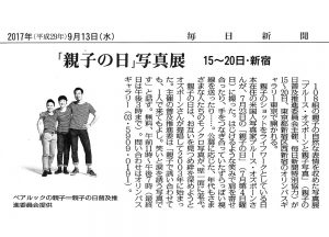 9月192017カテゴリーなし9月13日の毎日新聞で、「親子の日」写真展の告知をしてくれました。 展示会は、オリンパスギャラリー東京にて明後日の20日まで! 108組の親子の笑顔に出会いに来てくださいね。 展示会の詳細はこちら。 Category: カテゴリーなしBy 親子の日 Press2017年9月19日Leave a commentTags: Bruce OsbornOLYMPUSOyakoOyako Dayオリンパスブルースオズボーン写真写真展展覧会親子親子の日 Author: 親子の日 Press Post navigationPreviousPrevious post:アニマル浜口+浜口京子さん親子からのお祝いが!NextNext post:「ブルース・オズボーン 親子の写真展 in 沖縄」のお知らせRelated Posts親子で作った写真絵本「たいせつなもの」完成!2023年10月27日親子をつなぐこの1冊2020年9月8日No title2020年9月7日「フロリダ・プロジェクト」「万引き家族」「パラサイト」ーー 連鎖するように続く貧困テーマが内包しているのは家族の姿だ。2020年2月14日親子をつなぐこの1冊2019年7月1日葉山で親子の日写真撮影会2019年6月12日