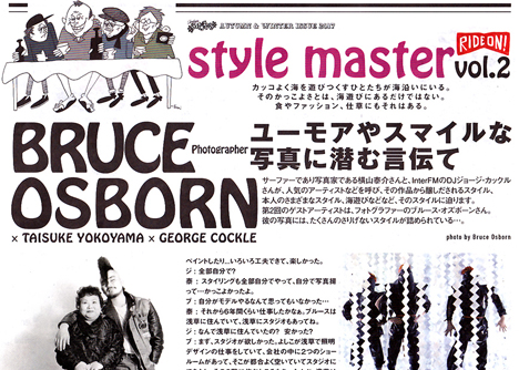 今では「親子写真」ですっかりお馴染みのブルース・オズボ―ンが、逗子のSurfers で、来日して以来親しくしている友人とお喋りした記事が「style master vol.2」に掲載されました。 Surfers では、ブ…
