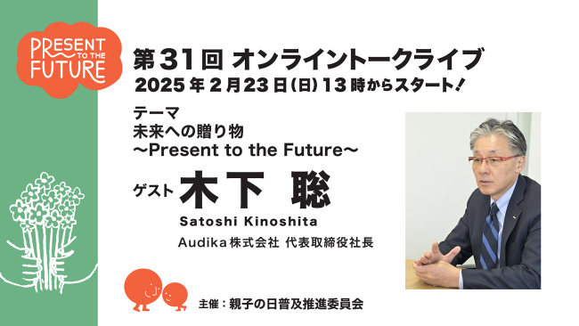 第31回目のオンライントークライブのゲストは、Audika 株式会社 代表取締役の木下 聡社長をお迎えします。進行は、編集者でプロデューサーの関智が担当。写真家のブルース・オズボーンと、親子の日普及推進委員会代表の井上佳…