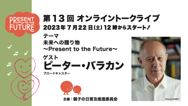 2023年7月22日(土)12時からスタート https://oyako.qpit.me/talk/ テーマ:「未来への贈り物~Present to the Future~」 ゲスト:ピーター・バラカン 第13回目の…