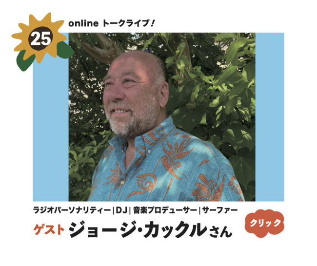 第25回オンライントークライブにお迎えするゲストが決定しました。 ラジオパーソナリティー、DJ、音楽プロデューサー、サーファー他、幅広い分野で活躍中のジョージ・カックル(George Cockle)さんです。 様々な番組…