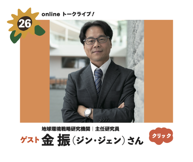オンライントークライブ 26回目の登壇は、葉山在住の地元つながり。金振さんです。 金さんは、湘南国際村センターを拠点とする公益財団法人地球環境戦略研究機関(IGES)で気候変動とエネルギー領域の研究に携わっている研究者。…