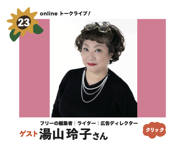 第23回目のオンライントークライブのゲストは、フリーの編集者、ライター、広告ディレクターなどをマルチにこなす湯山玲子さんです。湯山さんからの「未来への贈り物〜Present to the Future〜」は???
