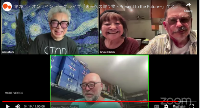 恒例になった「親子の日」オンライン トークライブの25回目が無事終了しま した。 ゲストにジョージ・カックルさんを迎え、ジョージさんとブルースがお互いをまだ知らなかった頃、20代に経験した旅の話などで盛り上がりました。 …