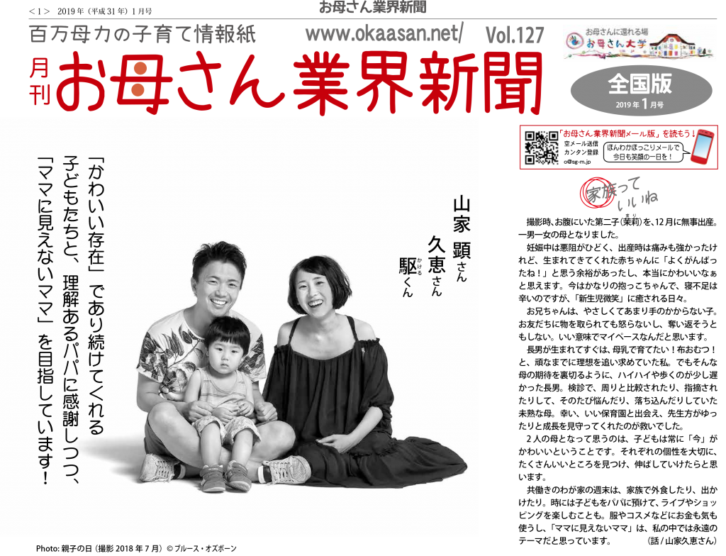 撮影時、お腹にいた第二子(茉莉)を、12月に無事出産。一男一女の母となりました。