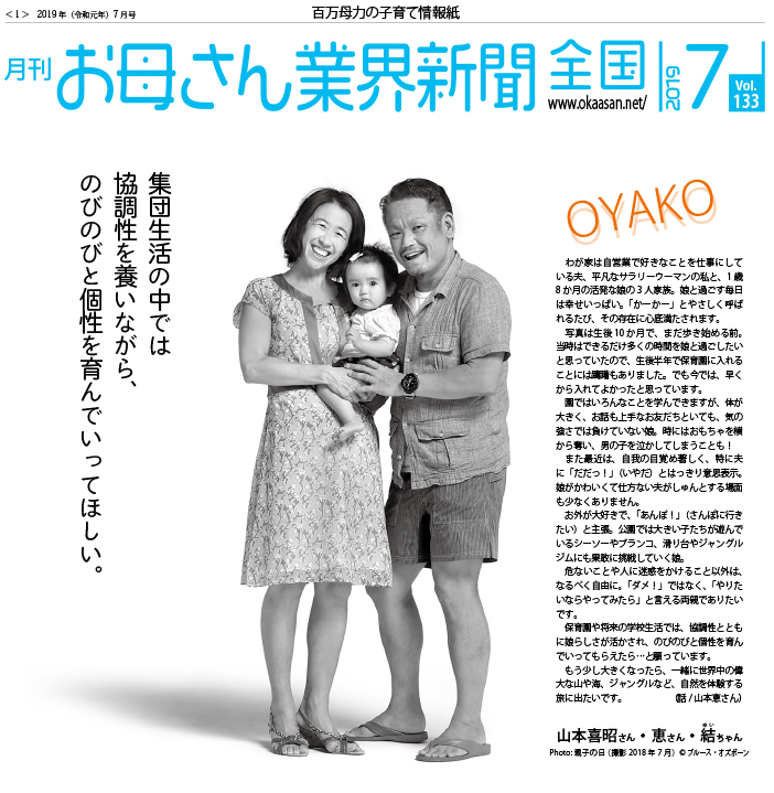 わが家は自営業で好きなことを仕事にしている夫、平凡なサラリーウーマンの私と、1歳8か月の活発な娘の3人家族。娘と過ごす毎日は幸せいっぱい。「かーかー」とやさしく呼ばれるたび、その存在に心底満たされます。 写真は生後10か月で、まだ歩き始める前。当時はできるだけ多くの時間を娘と過ごしたいと思っていたので、生後半年で保育園に入れることには躊躇もありました。でも今では、早くから入れてよかったと思っています。 園ではいろんなことを学んできますが、体が大きく、お話も上手なお友だちといても、気の強さでは負けていない娘。時にはおもちゃを横から奪い、男の子を泣かしてしまうことも! また最近は、自我の目覚め著しく、特に夫に「だだっ!」(いやだ)とはっきり意思表示。 娘がかわいくて仕方ない夫がしゅんとする場面も少なくありません。 お外が大好きで、「あんぽ!」(さんぽに行きたい)と主張。公園では大きい子たちが遊んでいるシーソーやブランコ、滑り台やジャングルジムにも果敢に挑戦していく娘。 危ないことや人に迷惑をかけること以外は、なるべく自由に。「ダメ!」ではなく、「やりたいならやってみたら」と言える両親でありたいです。 保育園や将来の学校生活では、協調性とともに娘らしさが活かされ、のびのびと個性を育んでいってもらえたら…と願っています。 もう少し大きくなったら、一緒に世界中の偉大な山や海、ジャングルなど、自然を体験する旅に出たいです。(話/山本恵さん)
