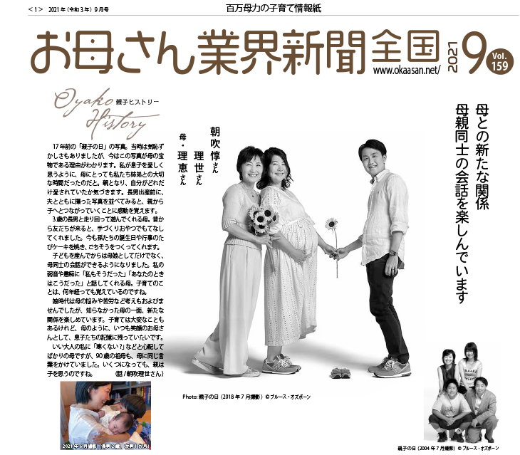 17年前の「親子の日」の写真。当時は気恥ずかしさもありましたが、今はこの写真が母の宝物である理由がわかります。私が息子を愛しく思うように、母にとっても私たち姉弟との大切な時間だったのだと。親となり、自分がどれだけ愛されていたか気づきます。長男出産前に、夫とともに撮った写真を並べてみると、親から子へとつながっていくことに感動を覚えます。
