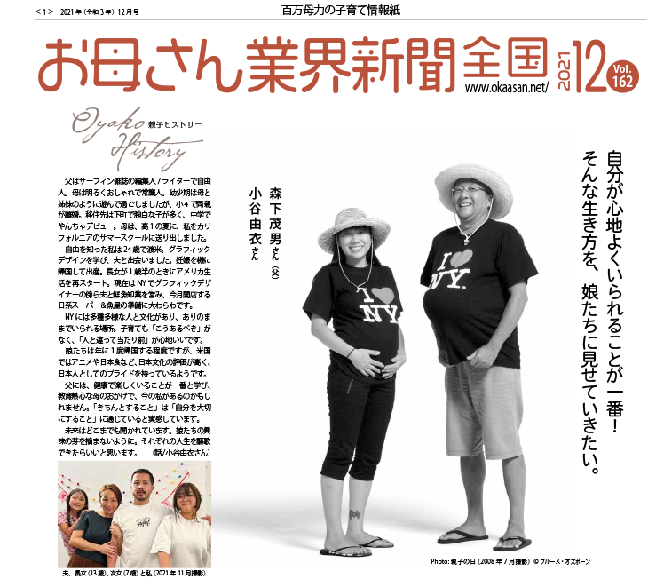 自由を知った私は24歳で渡米。グラフィックデザインを学び、夫と出会いました。妊娠を機に帰国して出産。長女が1歳半のときにアメリカ生活を再スタート。現在はNYでグラフィックデザイナーの傍ら夫と鮮魚卸業を営み、今月開店する日系スーパー&魚屋の準備に大わらわです。