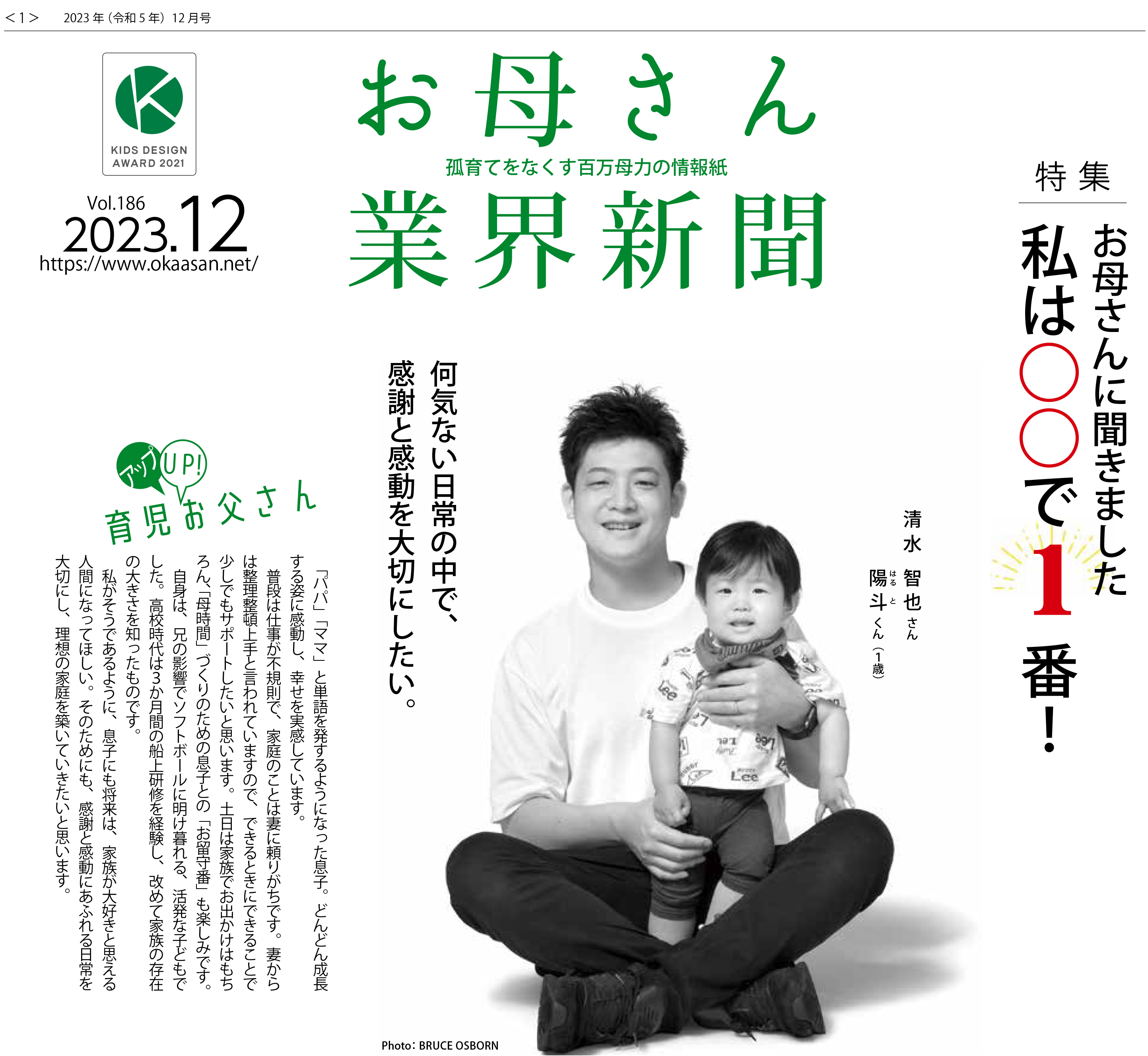 私がそうであるように、息子にも将来は、家族が大好きと思える人間になってほしい。そのためにも、感謝と感動にあふれる日常を大切にし、理想の家庭を築いていきたいと思います。