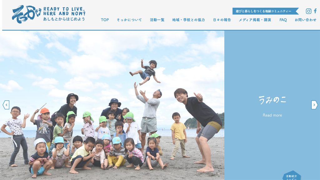永井:私は神奈川県の逗子に住んでいて、逗子で「一般社団法人そっか」という放課後の自然学校と保育園を運営しています。自然とのつながりをベースに海、山、川で子どもたちが思いきり楽しめる場所です。ウェブサイトを今、映していただいていますね。