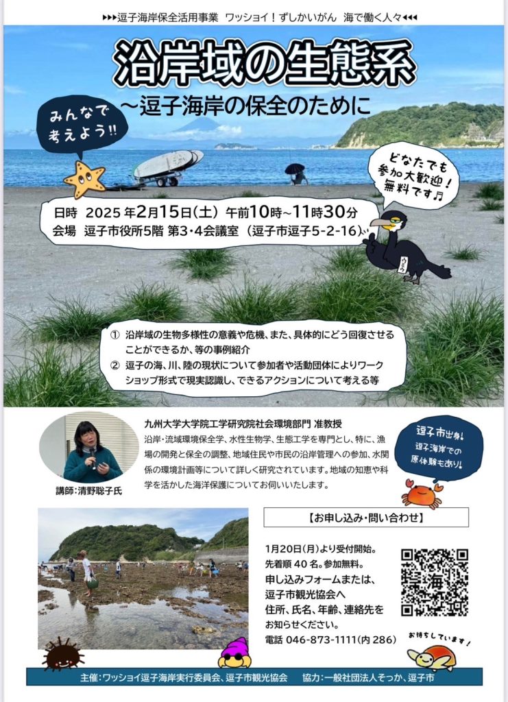 講演会『沿岸域の生態系~逗子海岸の保全のために』開催のお知らせ