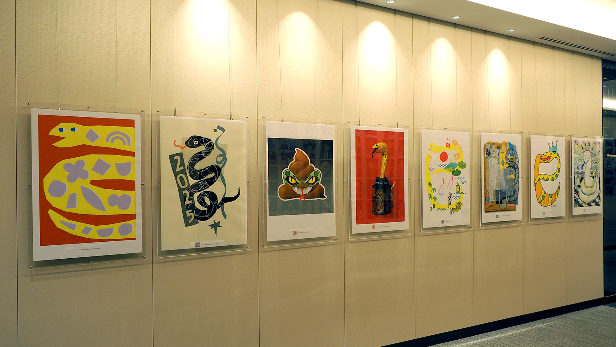 Yoshiko: The third person from the left in the spiral is Mick Haggerty, who has created works that are fairly well known to many people. Next to him is Shigenari Onishi, from Shigechan Land in Hokkaido. They are all snakes, but they have put a lot of thought into their New Year works. The exhibition is being held at the Foreign Correspondents’ Club of Japan (FCCJ) throughout the month of January, so please come and see it.