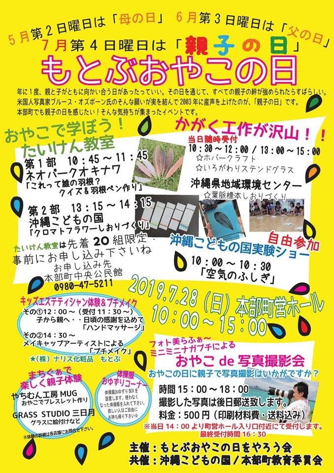 「もとぶおやこの日」が、「親子の日」の7月の28日に開催されます。