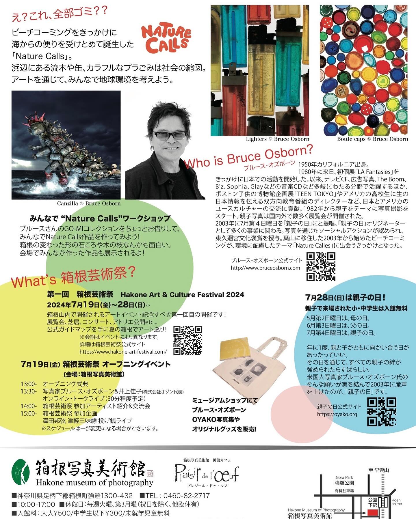 「箱根に根付いた文化を発信していきたい」という思いを込めて、箱根町ゆかりの人たちが絵画や写真展、演劇、コンサートなどを町一帯で行う、「第1回箱根芸術祭」が、19日から始まる。企画したのは箱根町出身の写真家、遠藤桂さん。その遠藤さんが運営する箱根写真美術館で 第一回箱根芸術祭の招待作家としてブルース・オズボーン のNature Callsシリーズが展示されます。