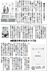 7月52018お知らせ 毎日新聞(7月2日)に、「親子をつなぐこの一冊」の紹介記事が掲載されました。 このキャンペーンに参加した書店がお薦めする書籍がありますので、参考にして下さい。 参考のサイト Category: お知らせBy 親子の日 Press2018年7月5日Leave a commentTags: Bruce OsbornOyakoOyako Dayブルースオズボーン本を贈ろう毎日新聞親子親子の日親子をつなぐこの一冊 Author: 親子の日 Press Post navigationPreviousPrevious post:声の向こうにNextNext post:DAILY ZUSHI HAYAMA FRIDAYRelated Posts第41回 親子の日オンライン・トークライブのお知らせ2025年12月21日写真展のお知らせ2025年11月29日松本梨香 40周年記念特別公演『ナビゲーション2025』2025年9月11日『ラフ&ピース』、視聴者1名様にプレゼント2025年8月31日第37回オンライン トーク ライブ2025年8月24日第2回箱根芸術祭8月31日まで開催2025年8月16日