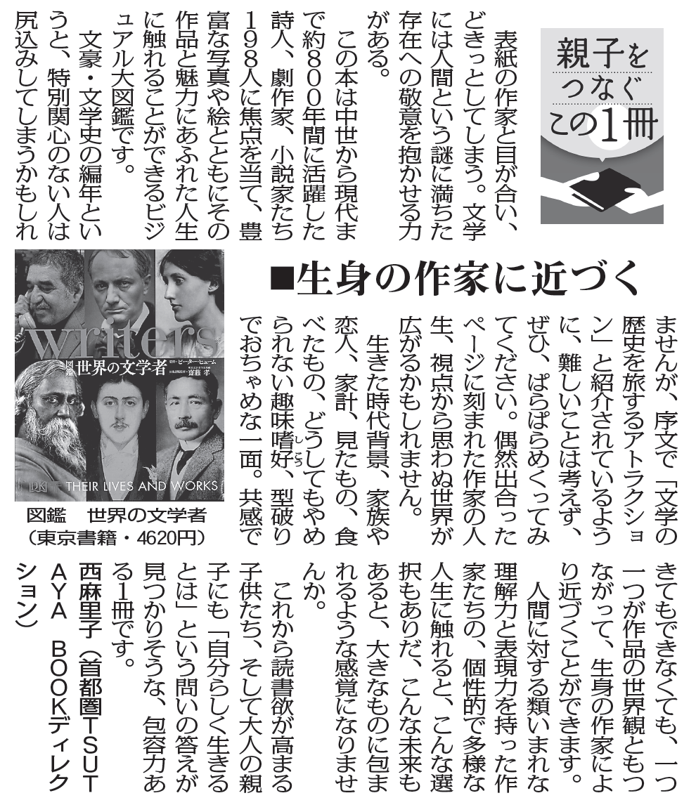 毎日新聞で毎月最初の月曜日の朝刊に掲載されている「親子をつなぐこの1冊」。