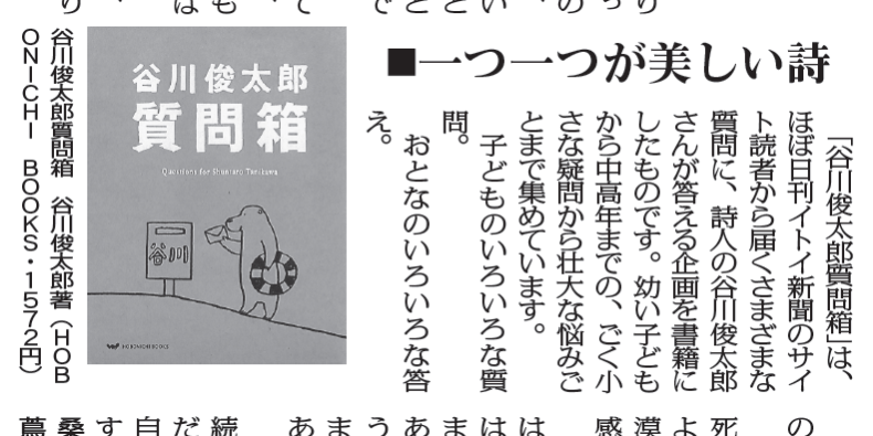 こちらは詩人の谷川俊太郎さんが、ほぼ日刊イトイ新聞のサイトの読者から届く質問に