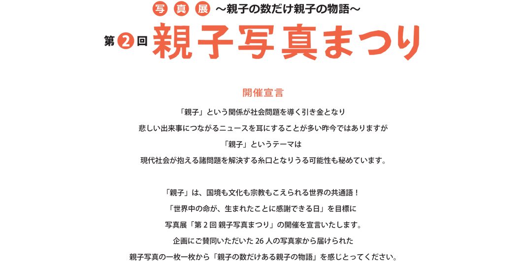 詳しくは、親子写真まつりイベントページをご覧ください。https://oyako.qpit.me/matsuri/