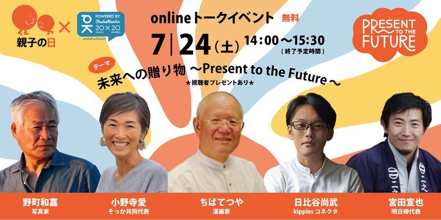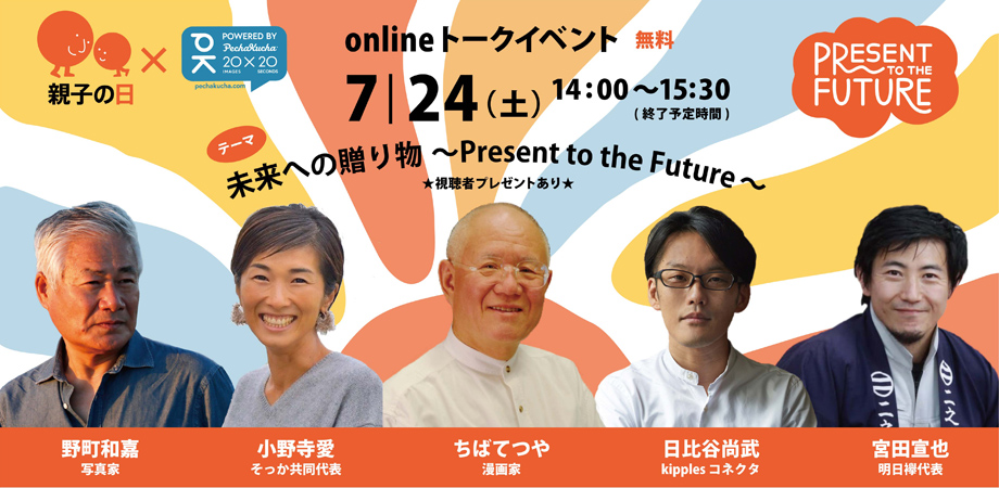 「親子の日」恒例のスーパーフォトセッションができない寂しさを吹っ飛ばせ!と、「親子の日」の前日にオンライントークイベントが行われます。