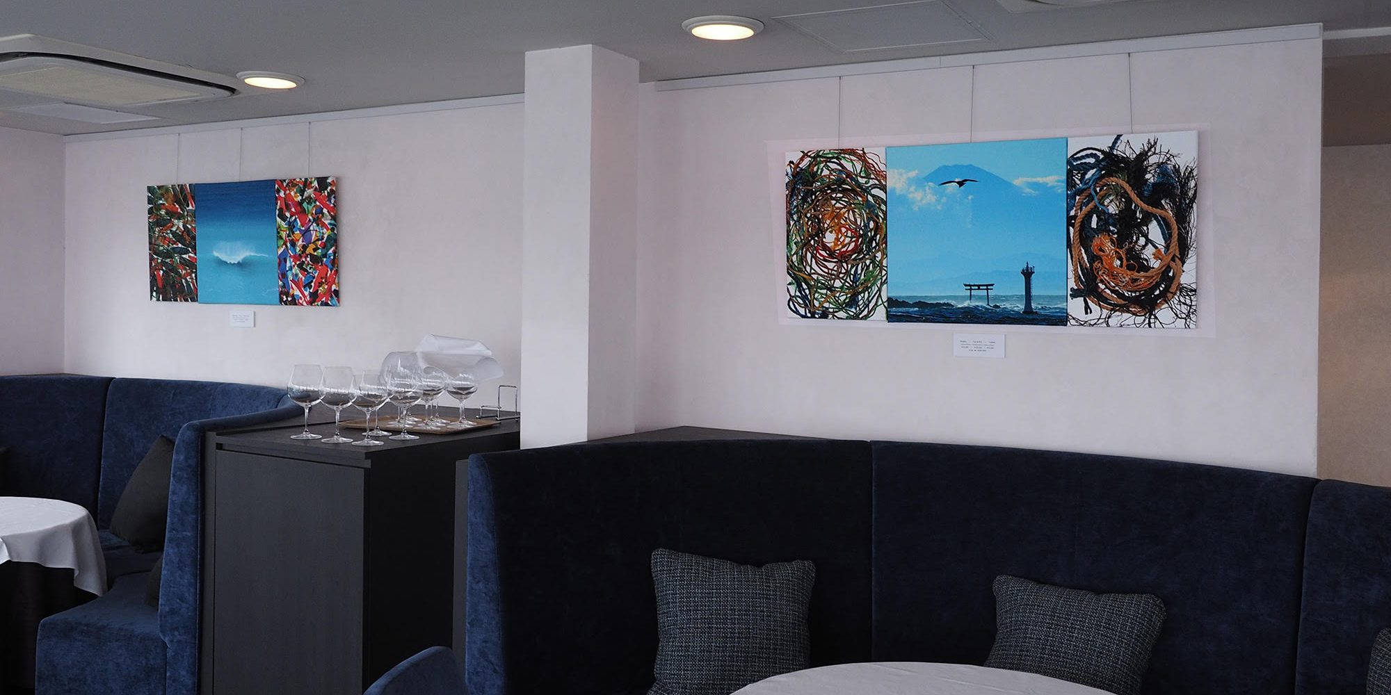 ブルースが撮った風景の写真と一緒に、海のゴミを撮影して展示しました。
