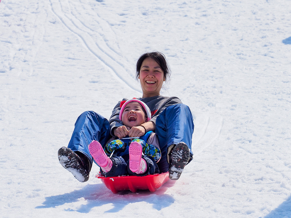 生まれて初めてママと乗ったソリ。スリル満点、大興奮のひとときでした!