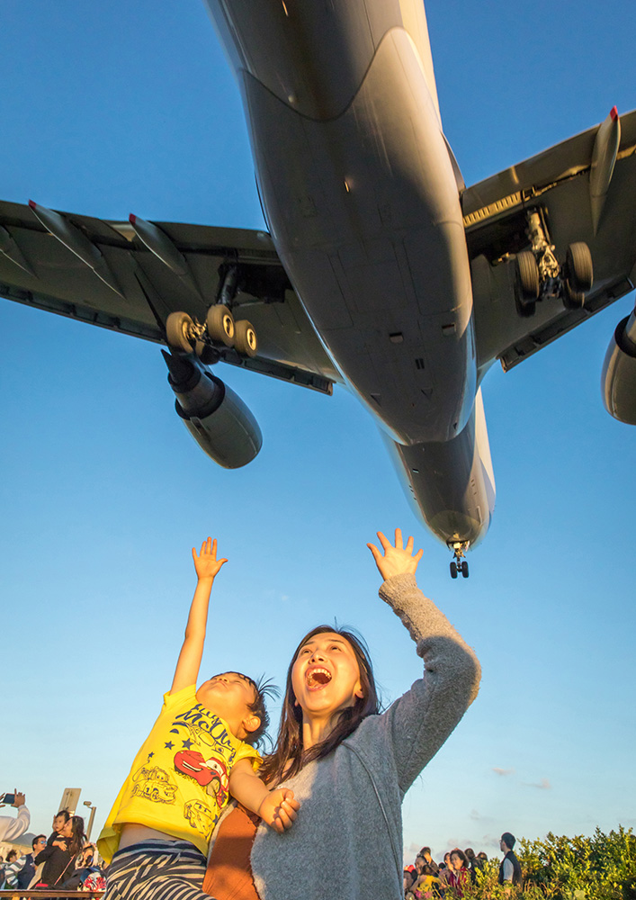台北にある松山空港そばで撮影しました。飛行機が頭上に降下してくるので、手を伸ばせば届くような感じで、興奮しました。