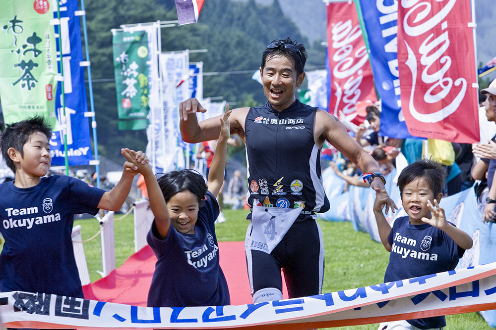 過酷なトライアスロン家族で応援、最後のさいごのゴールは子供と一緒に頑張る。