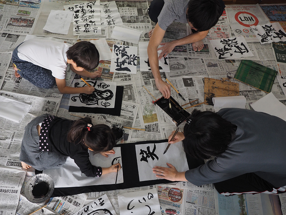 息子家族が、お正月に帰省したときに書初めをしているシーンです。