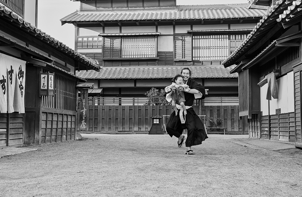 いつもいろんな所に連れて行ってくれるパパ!太秦映画村で侍の真似。CMの様で爆笑しながら撮影。パパは私達にとってのヒーローです。