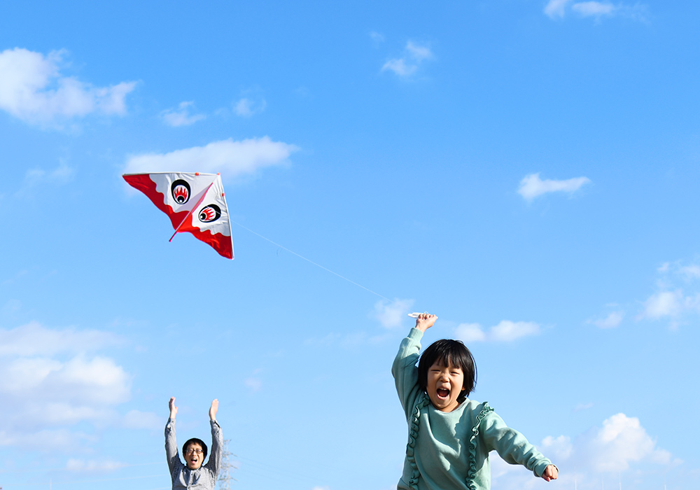 新年明けた青空の下、親子で凧揚げをしました。天高く、あがれ!